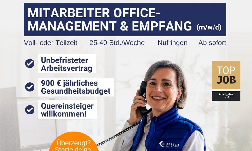 Mitarbeiter Officemanagement & Empfang (m/w/d) (Teilzeit | Nufringen)